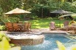 After redoing the pool a few years ago, we rototilled the lawn area and added compost and topsoil. However, after failing to get a thriving lawn even with the amendments, during a maintenance visit we took a shovel and dug a test pit. We discovered that the pool company had backfilled with very poor soil and a 3-foot layer of clay was preventing the water from draining. Using a backhoe, we broke through the compacted clay layer and got the drainage flowing properly. Thanks to our weekly visits we were able to nip the issue in the bud and avoid replacing the lawn every year.![]()
